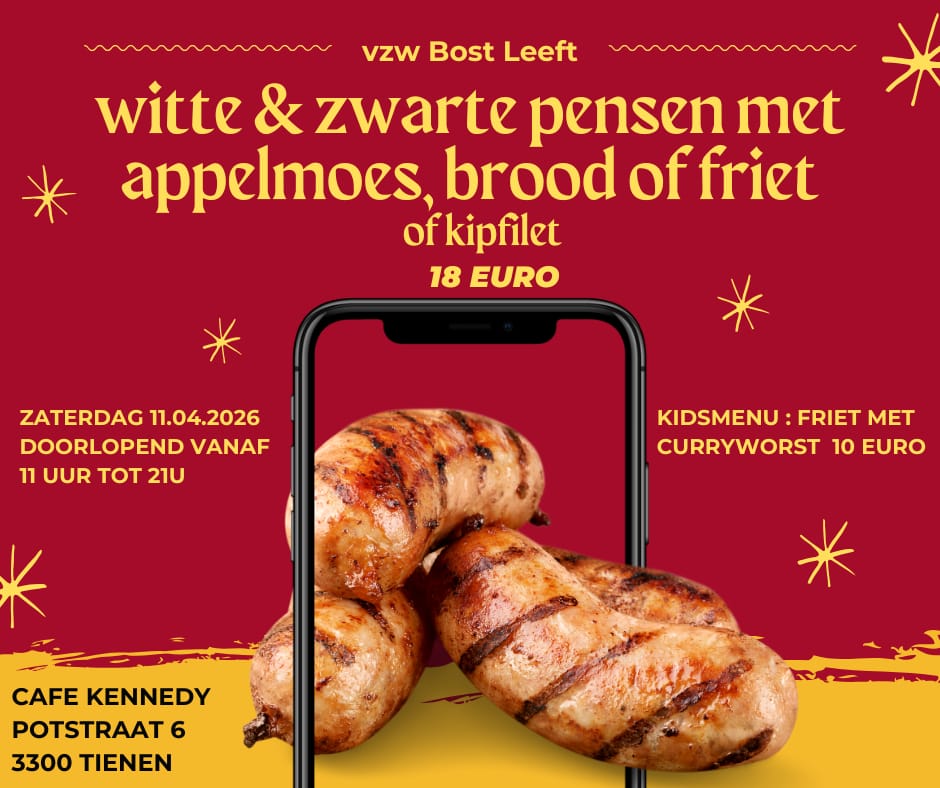 Op zaterdag 11/4 kan je doorlopend van 11-21u lekkere witte en zwarte pensen komen eten!